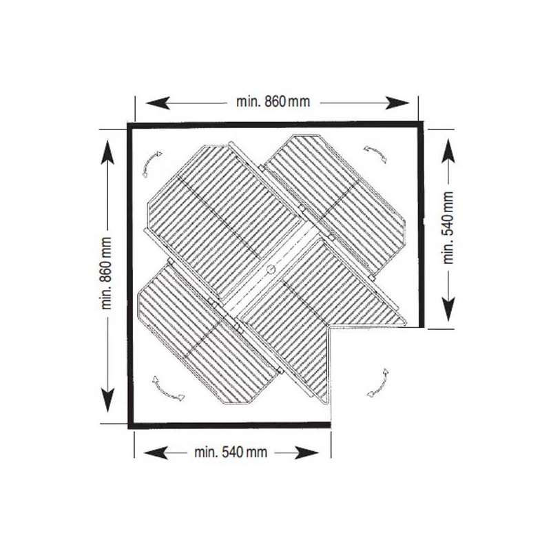 Expanda Quadro removível giratório para móveis de Canto em L fabricado em aço cromado com 4 cestos (2 cestos removíveis e 2 cestos fixos).