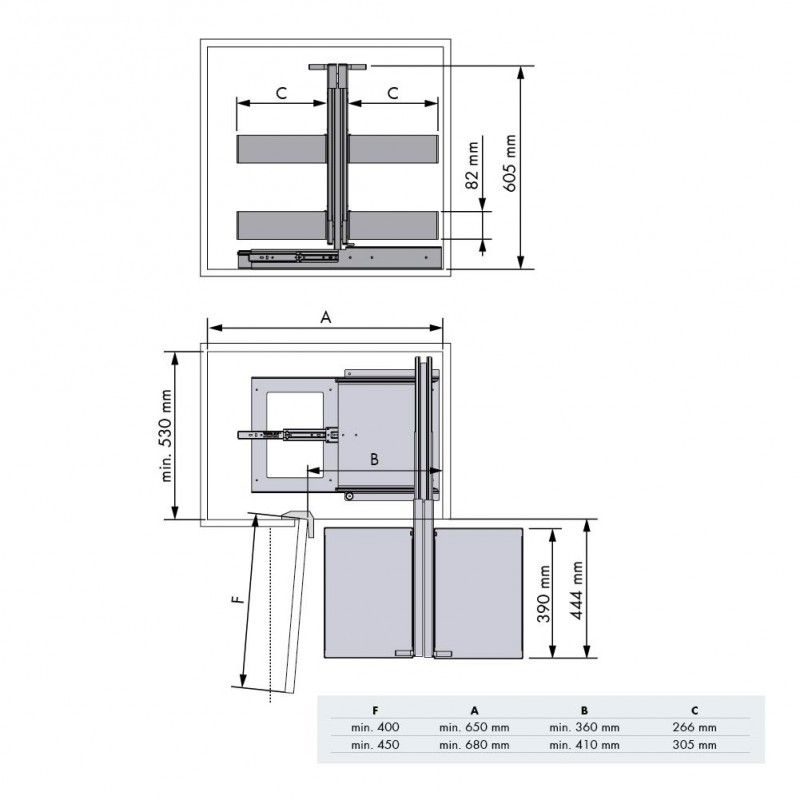 As seguintes dimensões correspondem aos modelos disponíveis segundo a largura do móvel. Todas as medidas estão expressas em milímetros.