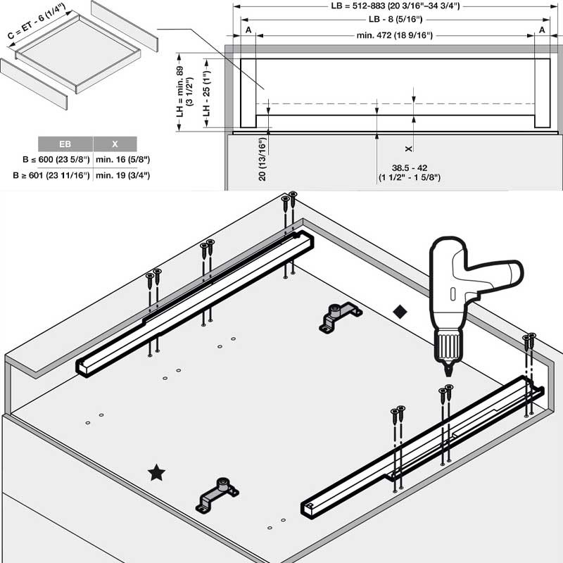 Expanda A gaveta com frentes sobrepostas que é removível em ambos os lados, para ilhas e móveis divisores de espaço. Não inclui bases ou frentes apenas ferragens.