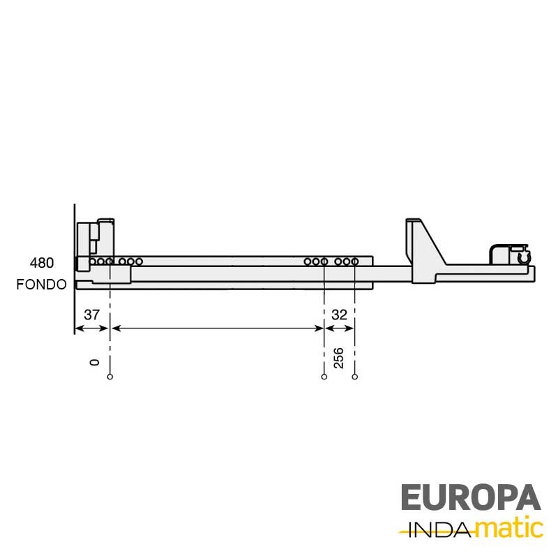 Expanda Conjunto de guias em aço INDAmatic com sistema de extração parcial com fecho automático e amortecimento para gavetas Europa do fabricante Indaux.