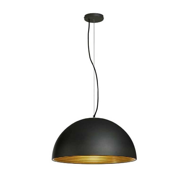 Expanda Lâmpada suspensa modelo Look Light em alumínio e aço com acabamento exterior preto e interior dourado.