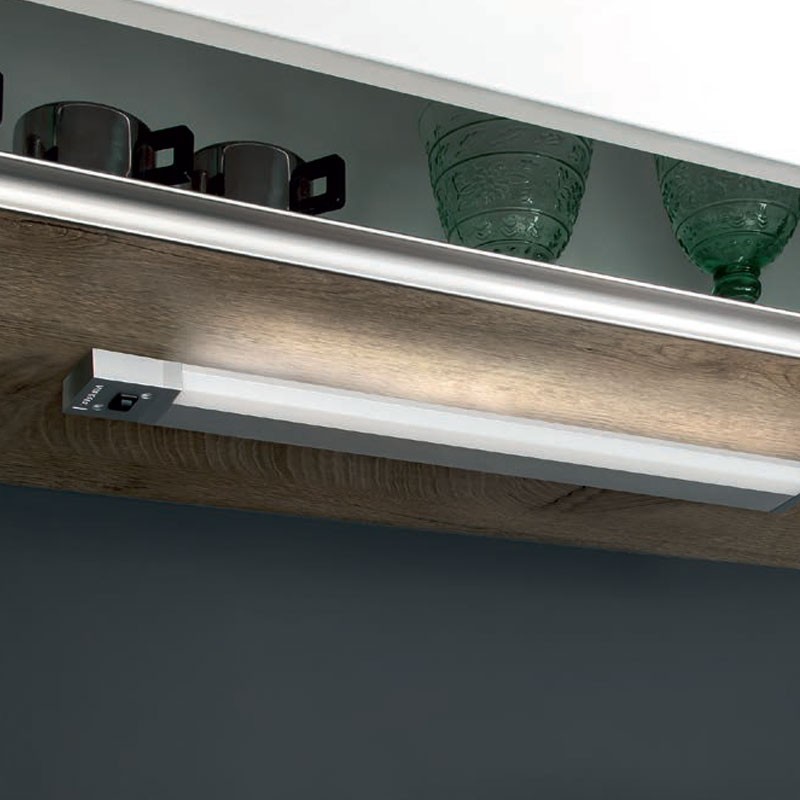 É fabricado em um perfil de alumínio e uma ou mais réguas de energia podem ser conectadas em série ao interruptor opcional.