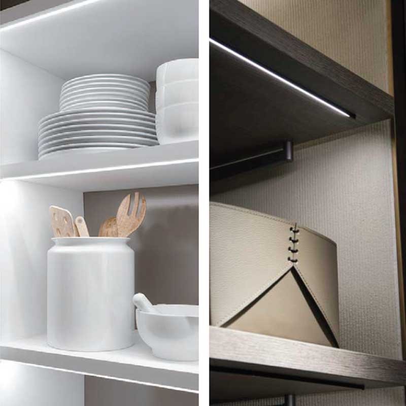 A régua contém um difusor como o da Régua Sky, mas com uma viseira para que, ao instalar a régua encaixada sob uma prateleira, esta proteja a nossa visão e não deslumbre diretamente a luz.