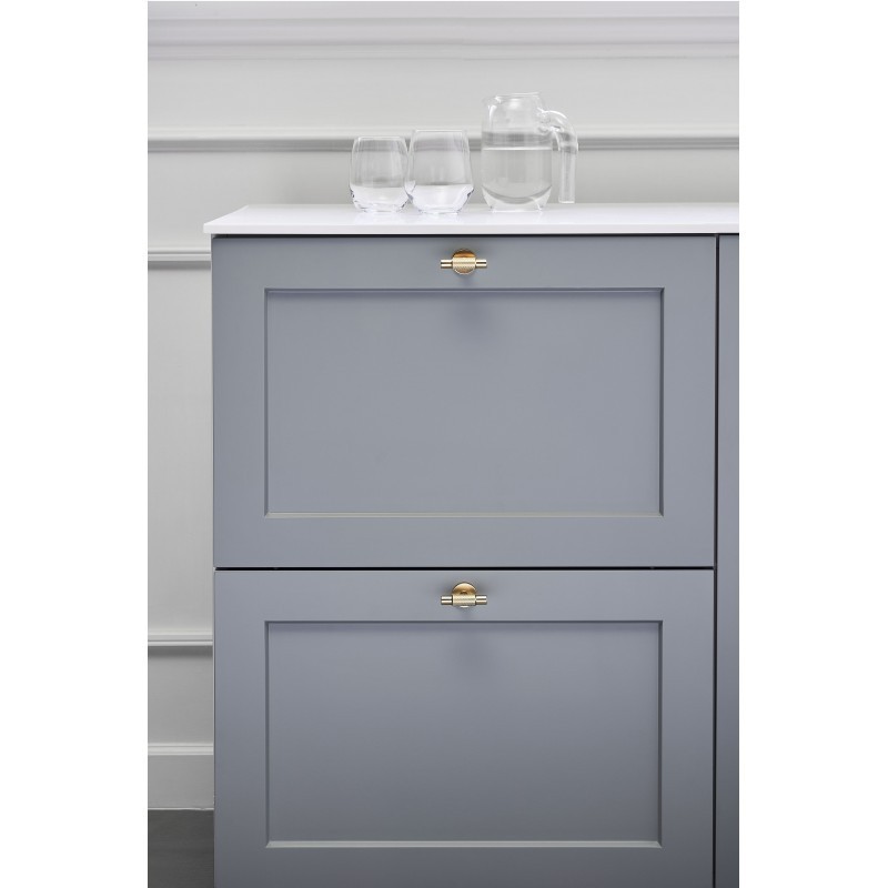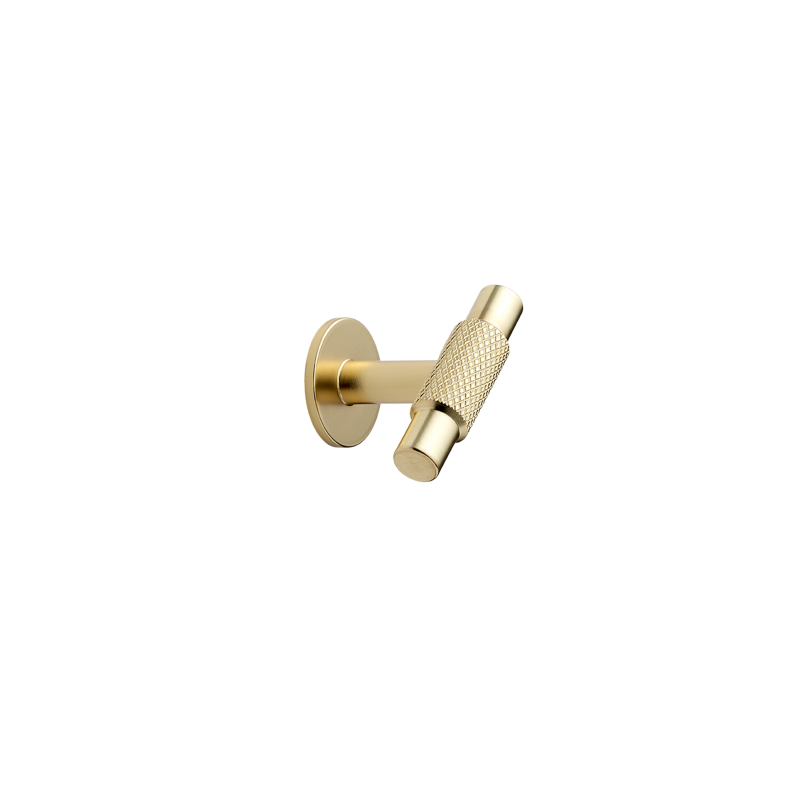 Expanda Puxador em forma de T projetado por Kamper Form. Disponível em três acabamentos elegantes: latão antigo, preto fosco e ouro acetinado, oferecendo múltiplas opções para combinar.