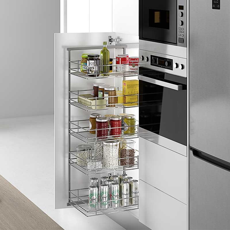 Este quadro extraível de aço armário baixo de cozinha com 5 cestos e está disponível para várias medidas de largura de móveis, tal como é explicado mais abaixo.