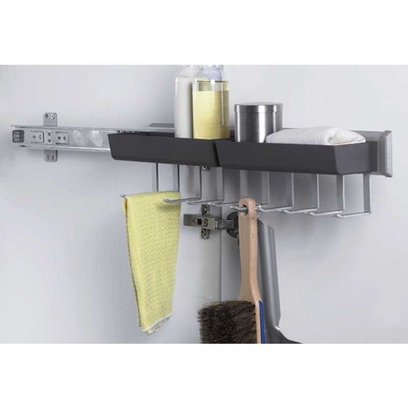 Expanda Prateleira removível multiuso modelo Hook para móveis de cozinha que inclui 2 prateleiras e 10 ganchos. Acabamento: prata e preto. Medida: 108 x 465 x 115 mm
