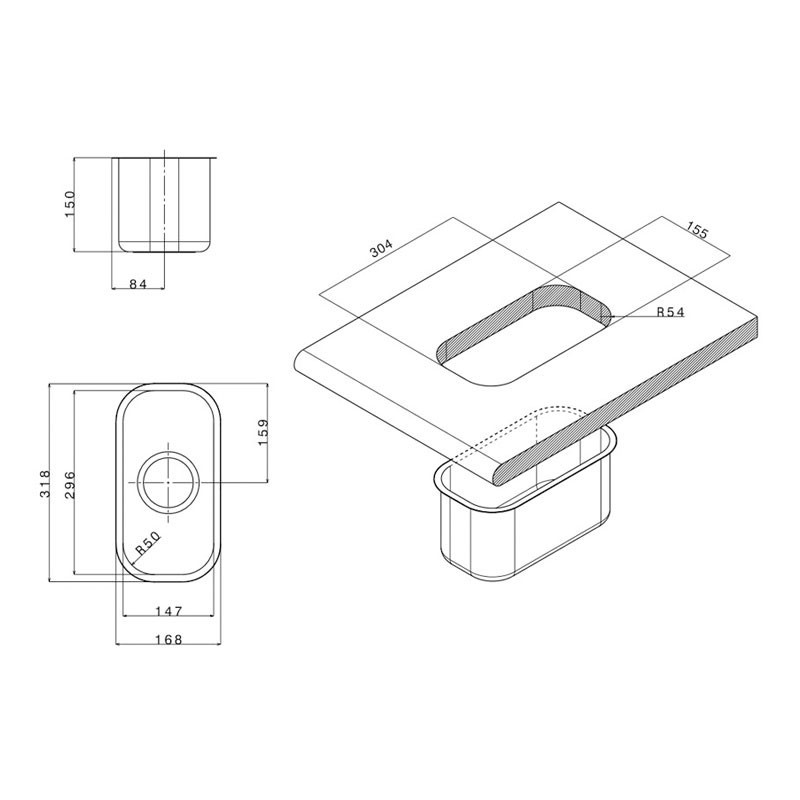 Expanda Pia de aço inoxidável escovado modelo Ferrara de 168 x 318 mm para instalação em bancada.