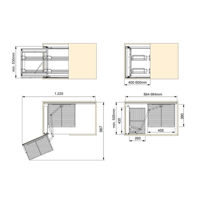 Canto supra cromado para aproveitar o espaço dos cantos e organizar todos os tipos de objetos dentro de armários.