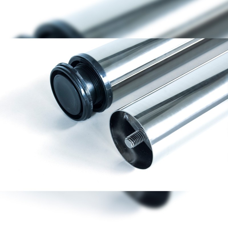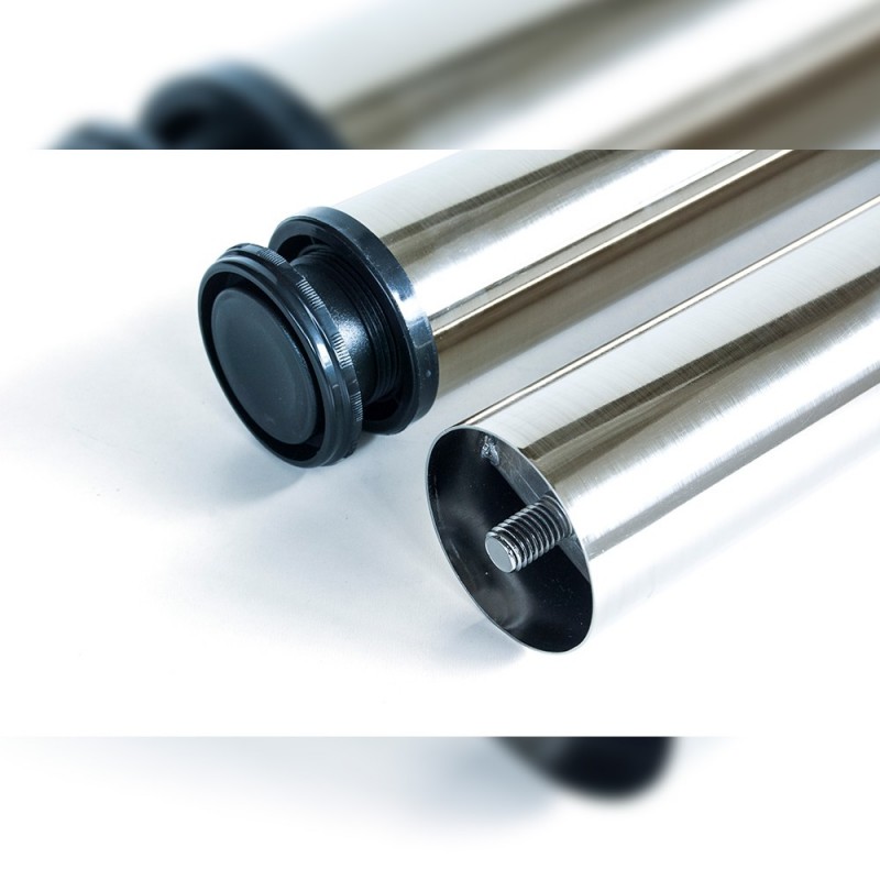 Pés reguláveis de diâmetro 80 mm são ideais para todo o tipo de mobiliário de cozinha, casa e escritório. São fabricadas em aço com regulação em altura. Sua montagem fácil se realiza parafusando a placa ao tampo da mesa através de parafusos (incluídos no fornecimento) e depois se rosqueia a perna a essa placa. Desta forma, a montagem e a desmontagem da perna da mesa, você pode fazer quantas vezes for necessário.