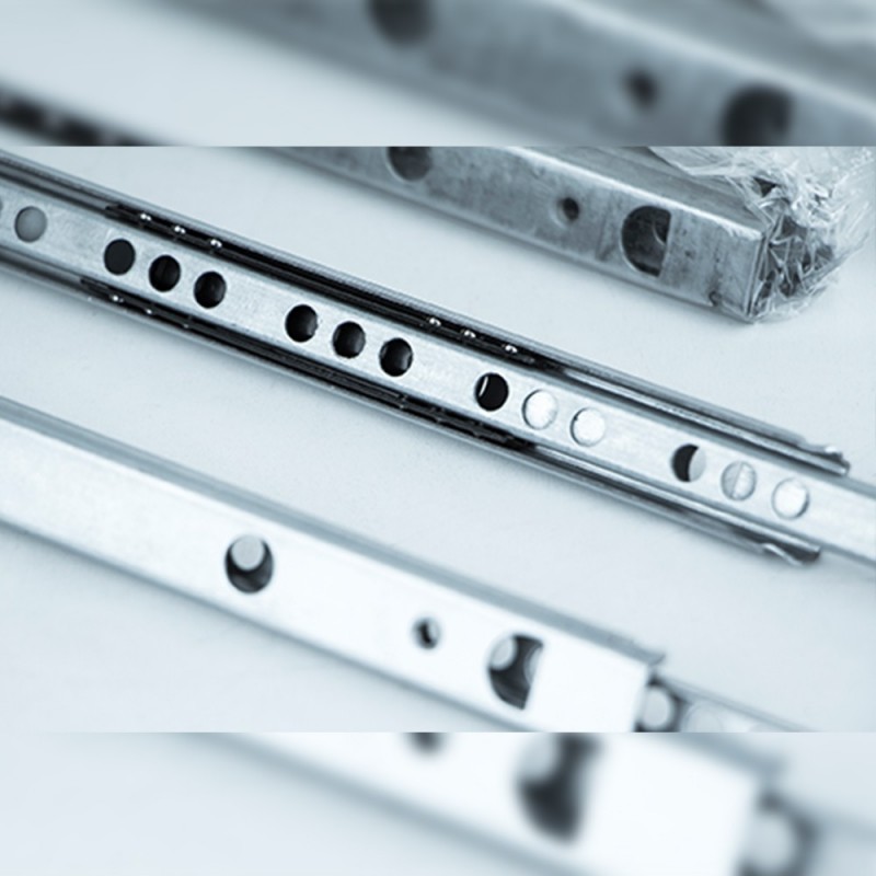 Expanda Guias de esferas com extração parcial fabricadas em aço zincagem . Este tipo de guia adapta-se a uma ranhura de 17 mm de largura na lateral da gaveta.