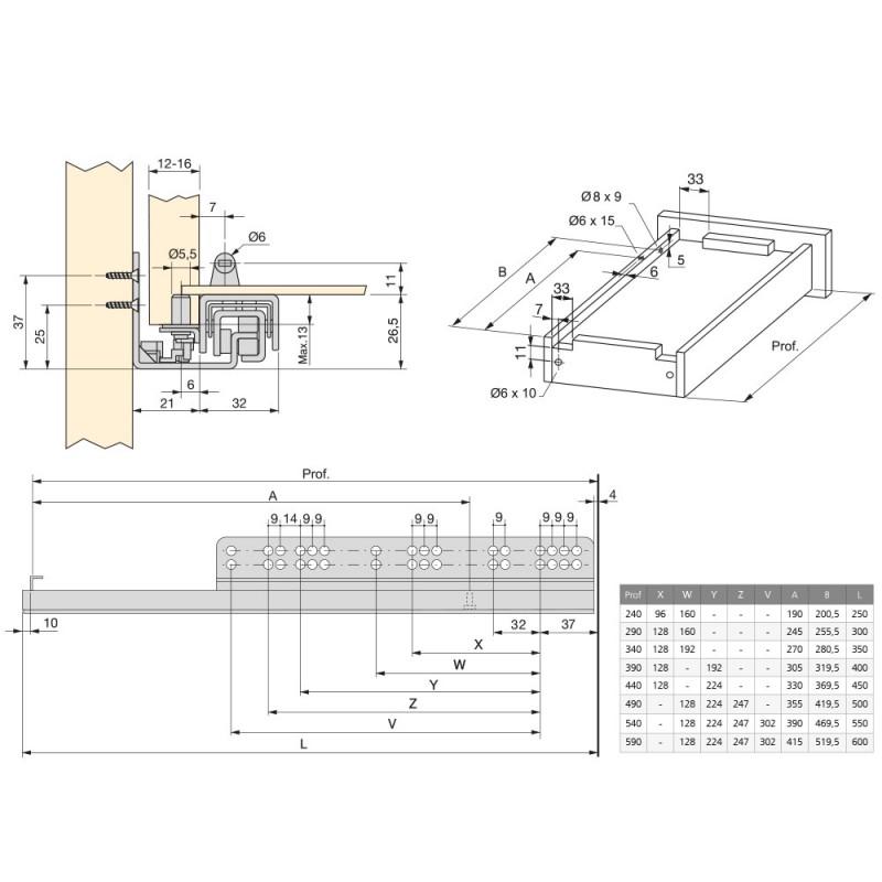 Guias ocultas de rodas para gaveta Slippe são perfeitas para móveis de casa. Essas diretrizes fornecem uma extração total da gaveta. Dispõem de auto desligamento e pistão amortecedor em ambas as guias, que fornece um fechamento suave da gaveta.
