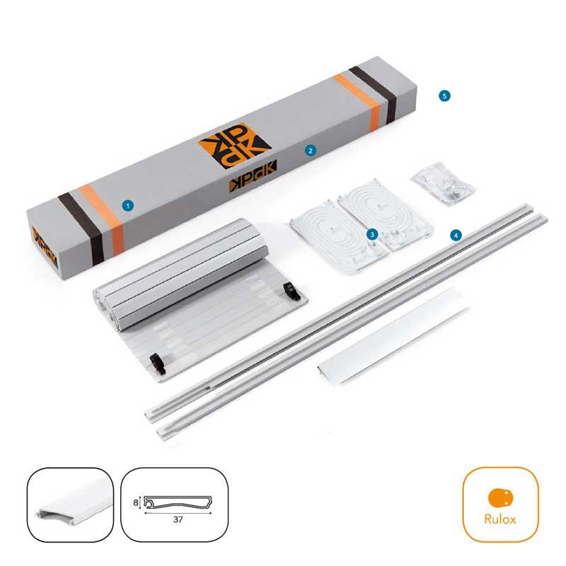 Os kit de persiana de Servicanto da gama Rulox Basic contam com um sistema de compensado a queda das lamas. O mecanismo incorpora duas tiras independentes que garantem um bom funcionamento e durabilidade da persiana.