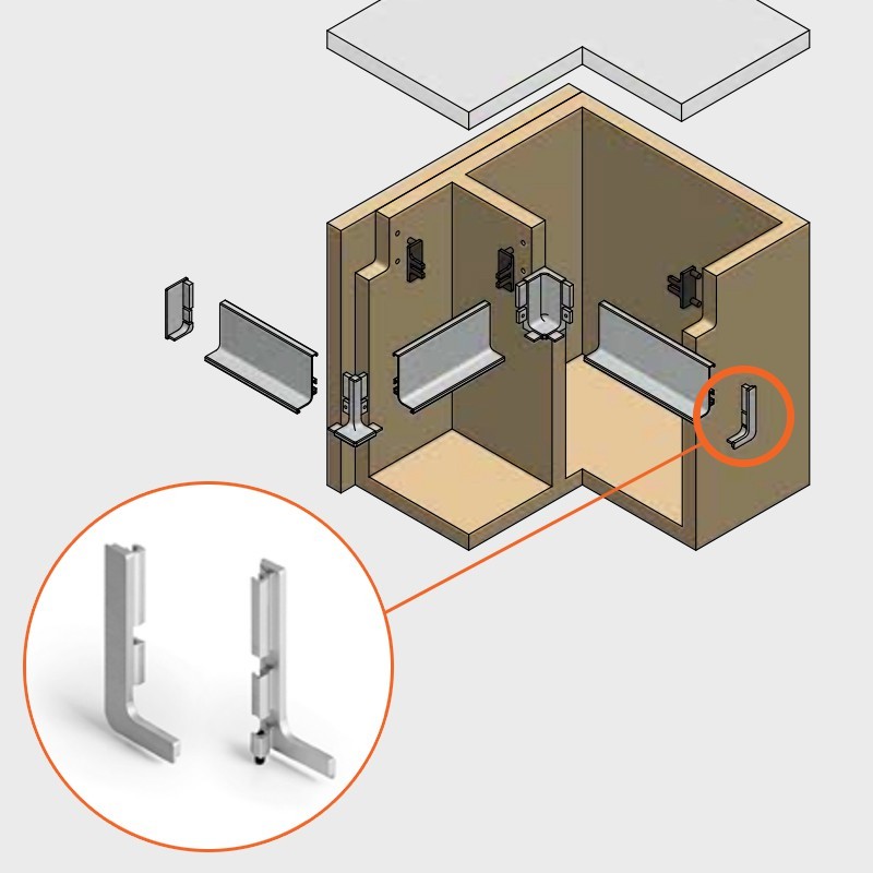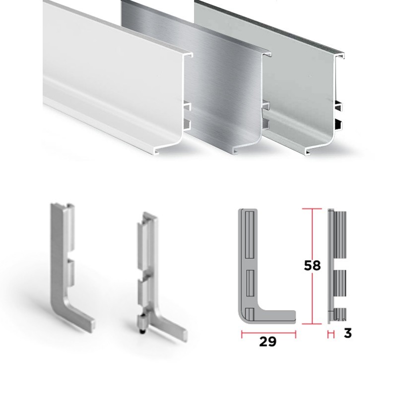 Tampas para remate final de perfis sistema gola horizontal superior. Compatível com todos os gola superior ref.8006. Vários acabamentos.