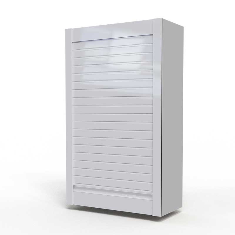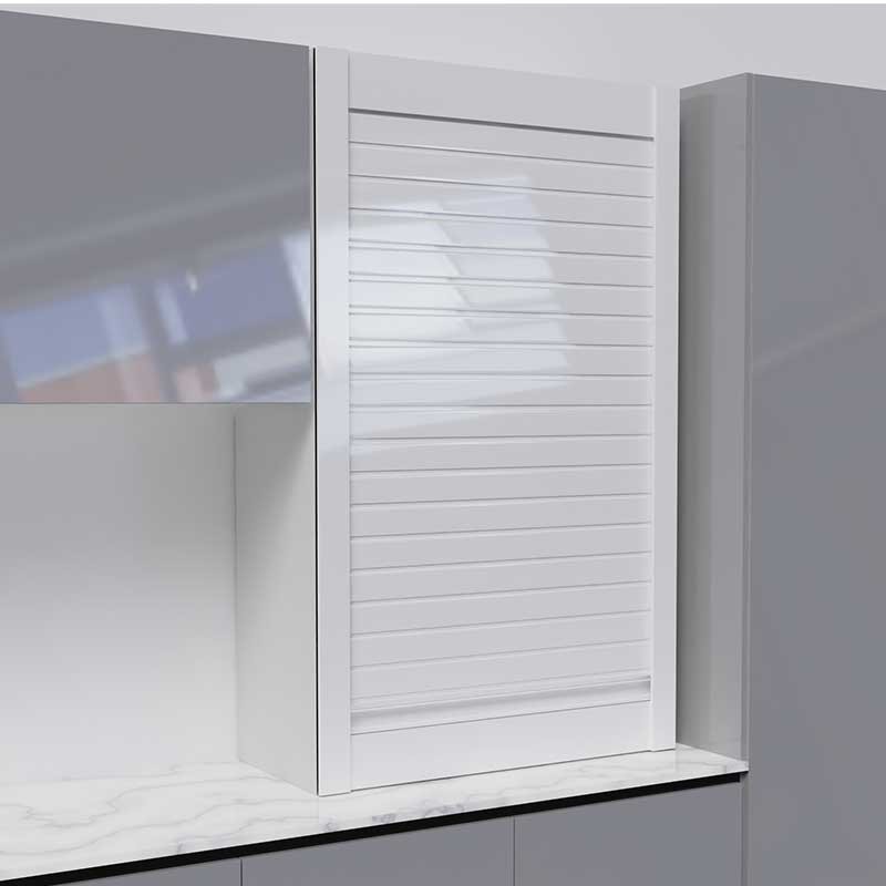 Expanda Persiana em kit para armário de cozinha fabricada com ripas de 40 mm de vidro temperado acabamento branco brilho e 4 mm de espessura com perfis de alumínio Cor Branco Brilho.