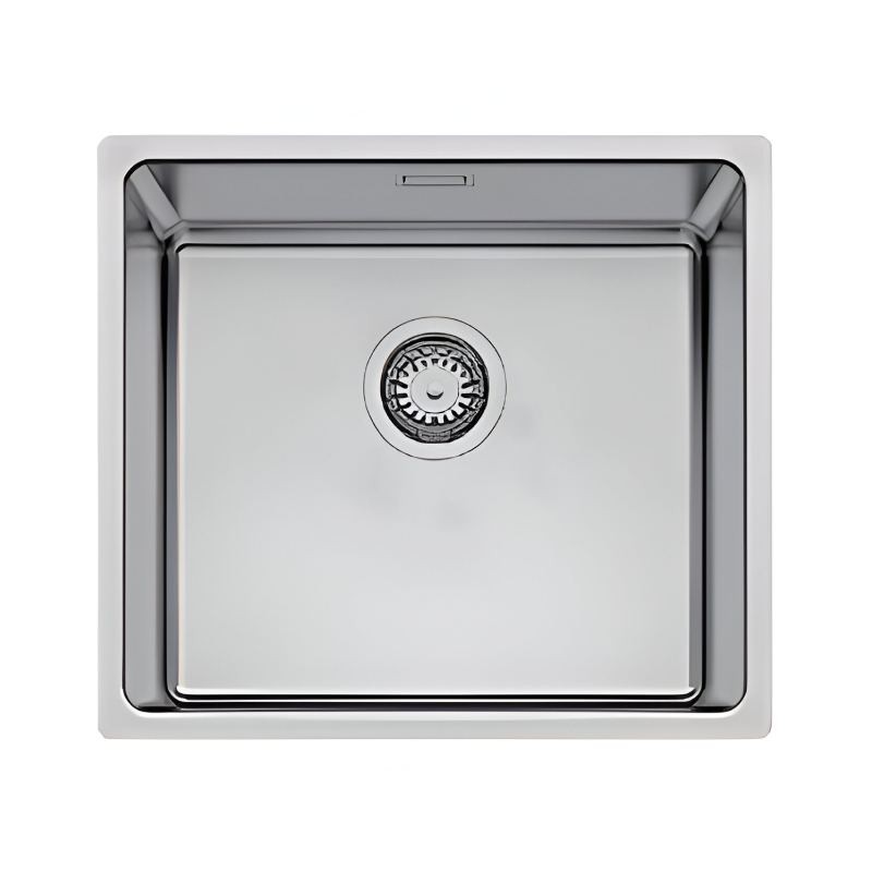 Expanda Cuba em aço inoxidável modelo Ferrara Plus de 440 x 440 mm para instalação por baixo da bancada, com opção de instalação à face ou filotop.