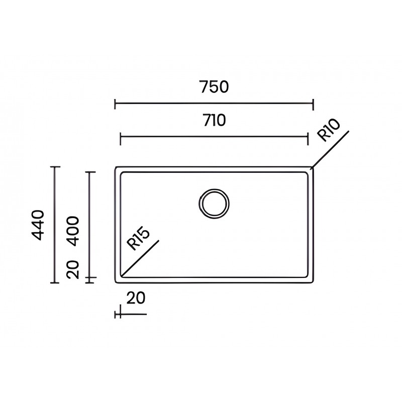 Expanda Cuba em aço inoxidável modelo Ferrara Plus de 750 x 440 mm para instalação por baixo da bancada, com opção de instalação à face ou filotop.
