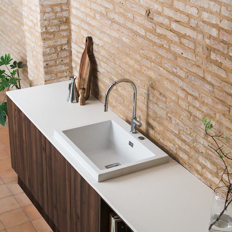 Fabricada por Poalgi em seu material em massa Hekla®, esta pia de granito oferece uma ampla e confortável área de trabalho resistente a fatores externos. Além disso, sua colocação sobre a bancada oferece duas alturas diferentes para se adaptar ao estilo da sua cozinha.