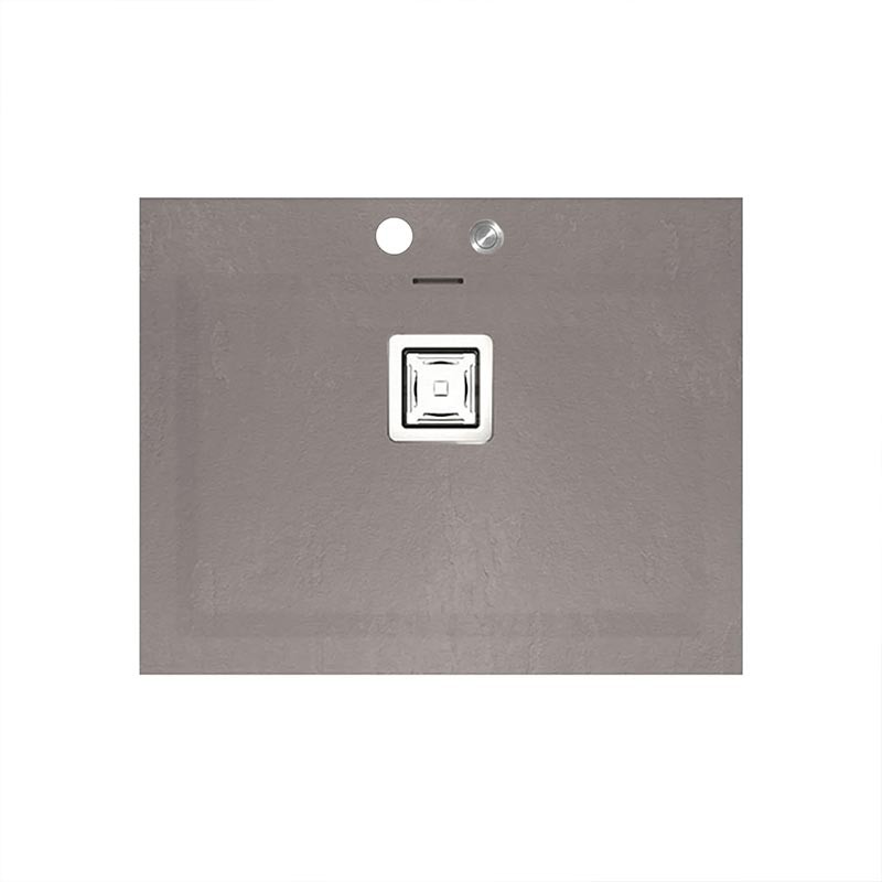 Expanda Pia de granito Hekla® modelo Kobus com textura de ardósia fosca para instalação sobre bancada em móveis de pelo menos 70 cm de largura.