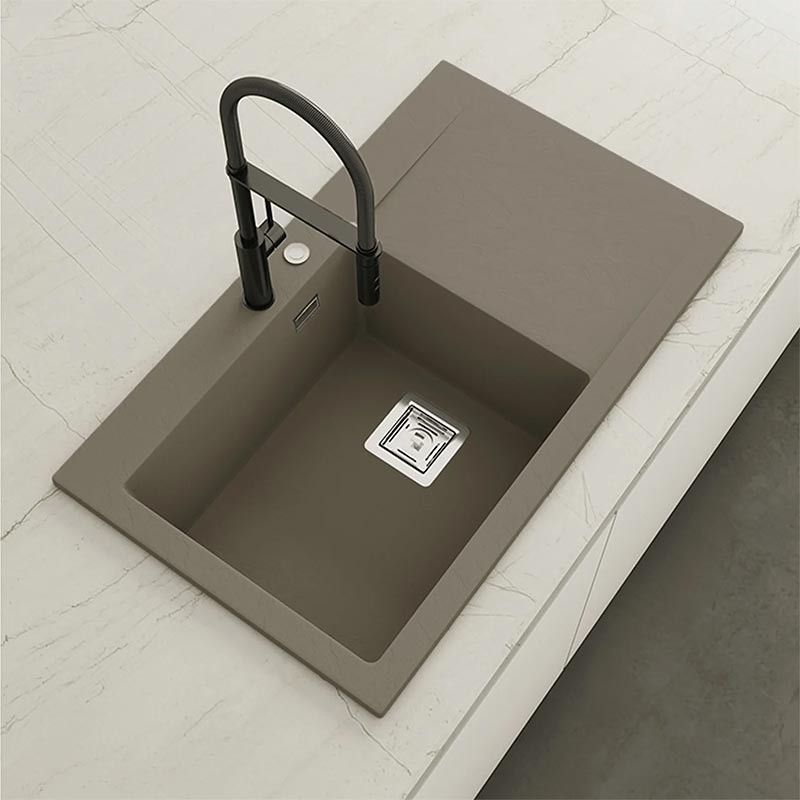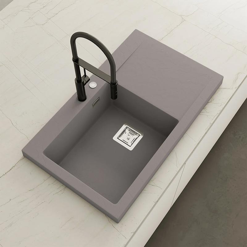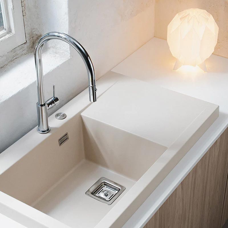 Fabricado por Poalgi em seu material em massa Hekla®, esta pia de granito oferece uma ampla e confortável área de trabalho resistente a fatores externos. Além disso, sua instalação sobre bancada oferece duas alturas diferentes para se adaptar ao estilo de sua cozinha.