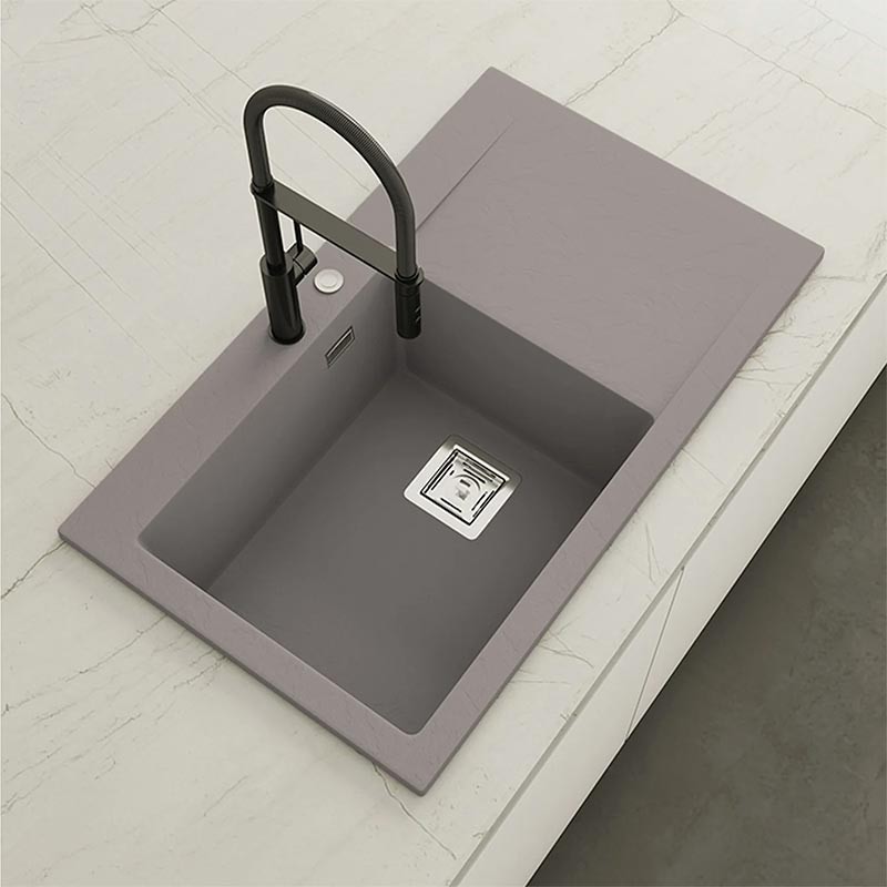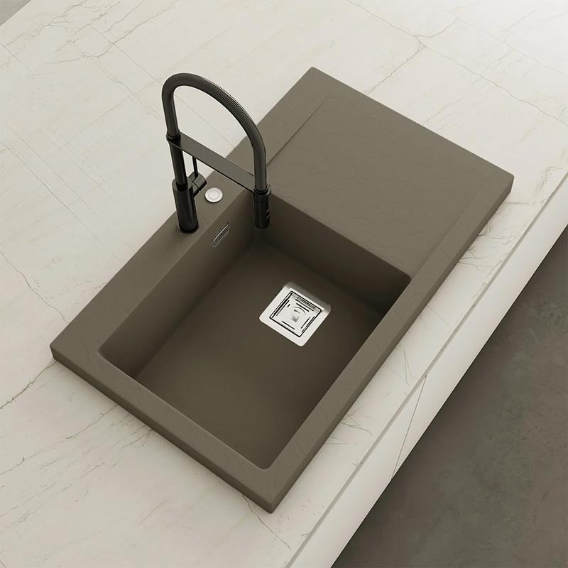 Expanda Pia de granito Hekla® modelo Kobus com textura ardósia fosca para montagem sobre bancada em móveis de pelo menos 60 cm de largura.