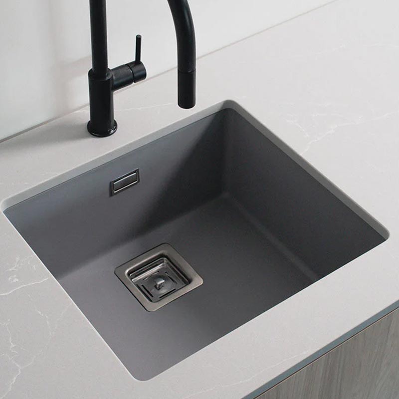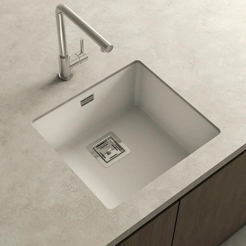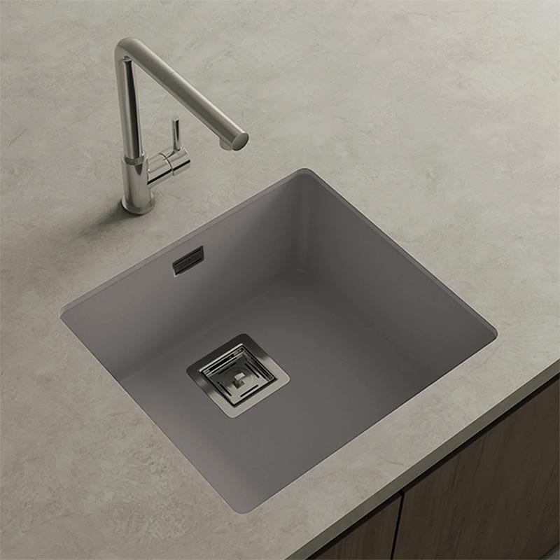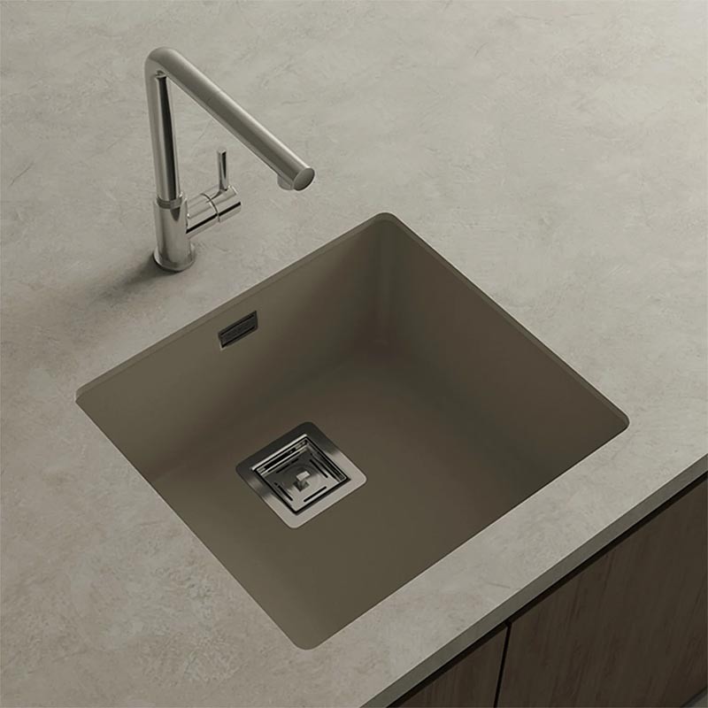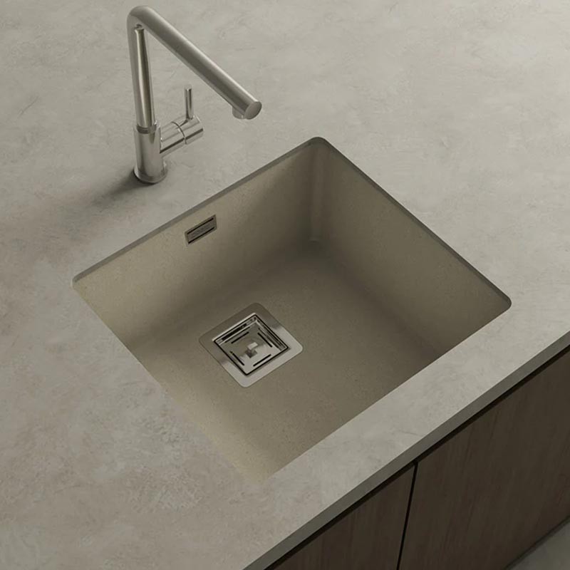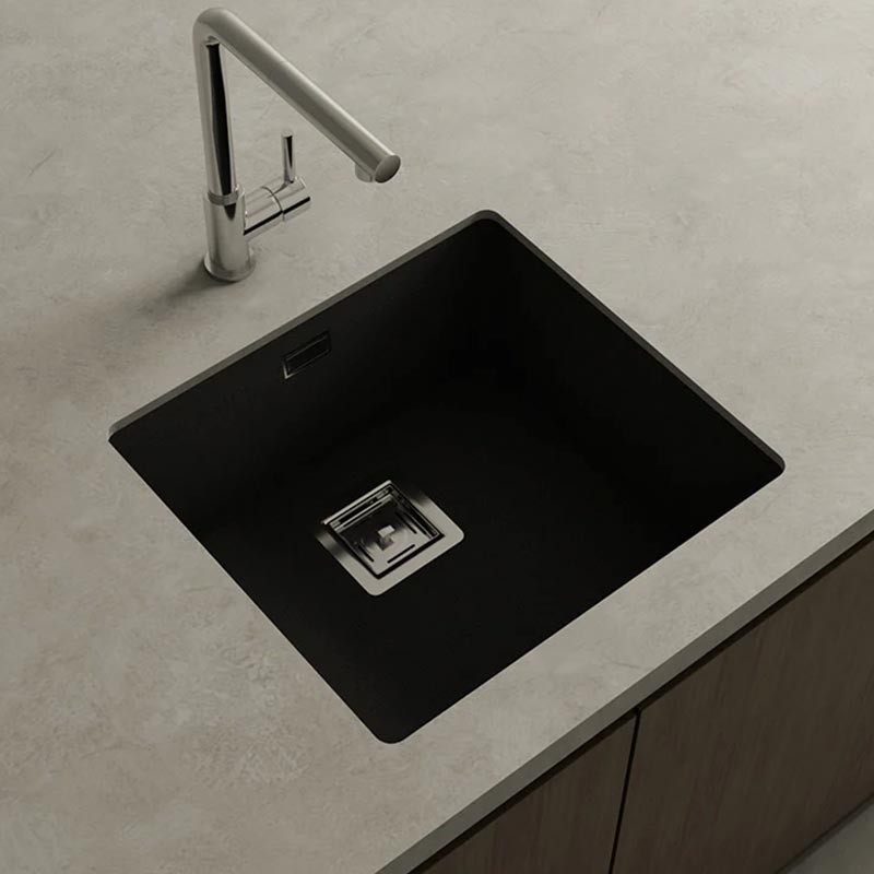 Expanda Pia de granito Hekla® modelo Zie 45 acabamento fosco para montagem em móveis de 60 cm no mínimo sob bancada e de 50 cm sobre bancada.
