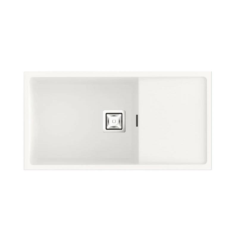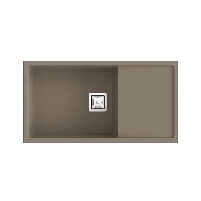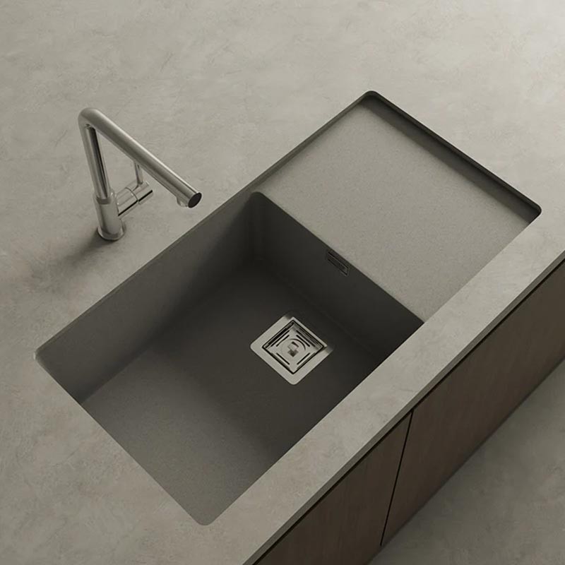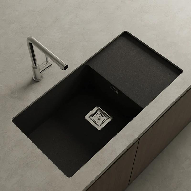 Expanda Pia de granito Hekla® modelo Zie 81 de uma cuba mais escorredor acabamento fosco para montagem sob bancada ou sobre bancada em móveis de 90 cm no mínimo.