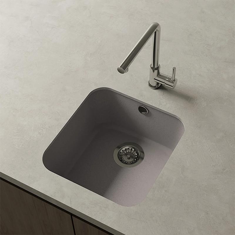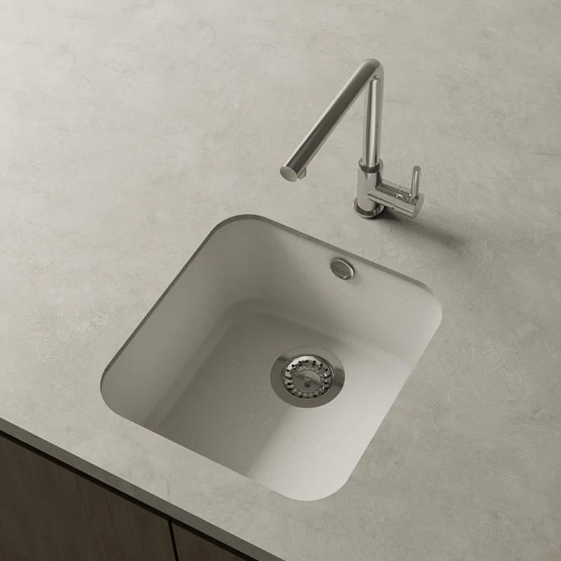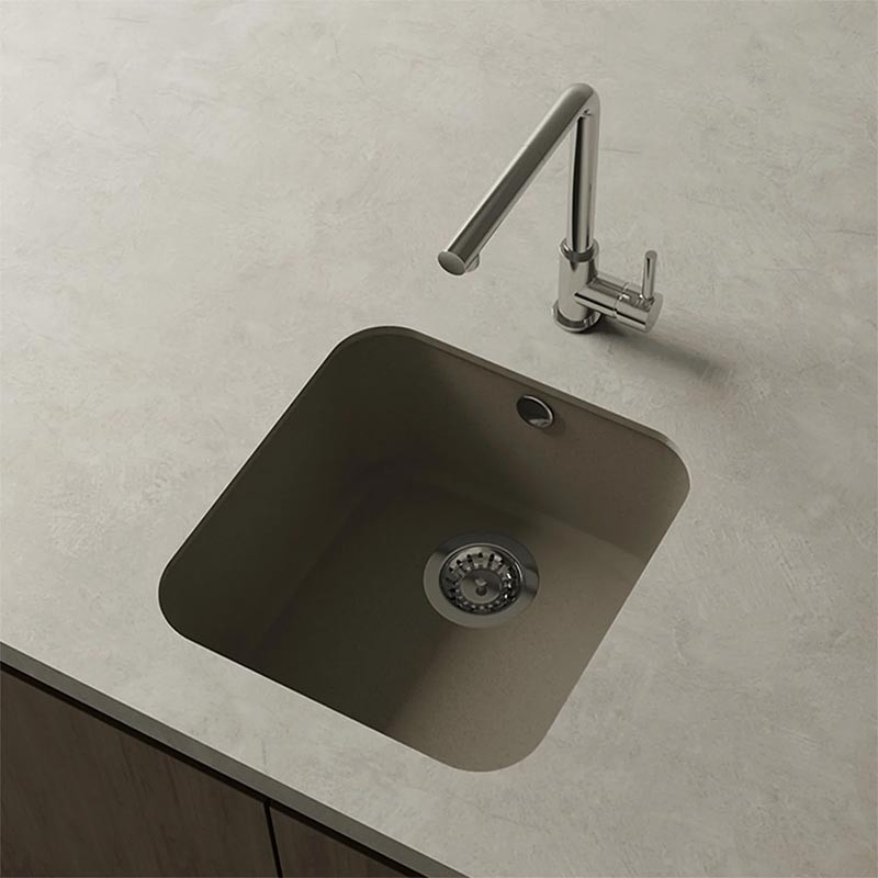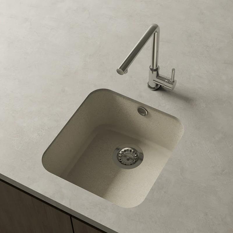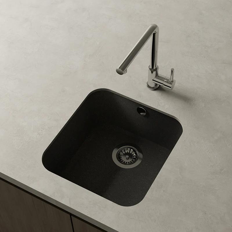 Expanda Pia de granito Hekla® modelo Gandia acabamento fosco para montagem sob a bancada ou sobre a bancada em móveis de pelo menos 50 cm de largura.