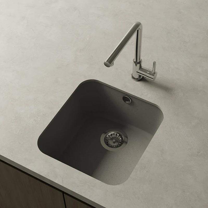 Uma pia versátil que você pode colocar sob ou sobre a bancada, assim como escolher entre sua variedade de cores mates harmônicas inspiradas nos ecossistemas vulcânicos da Islândia.