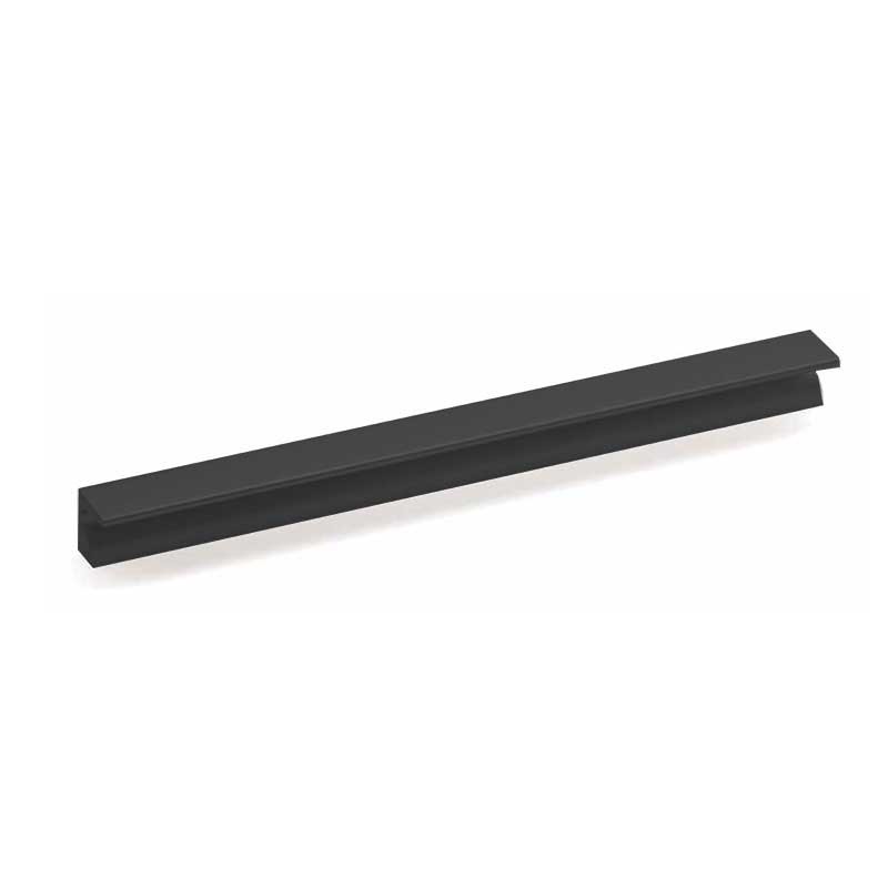 Expanda Puxador Malle 2450 para móveis de cozinha ou outros contemporâneos feito de alumínio na cor preto fosco. Inclui parafusos para montagem.