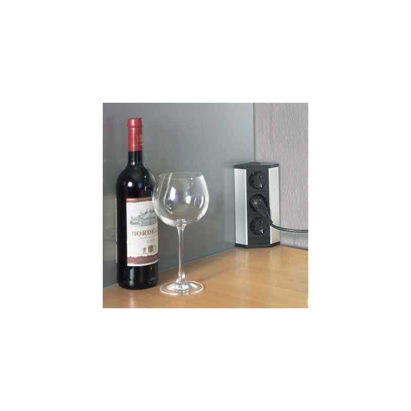 Expanda O energy box V-Dock é fabricado em alumínio e possui 3 tomadas. É ideal para ser usado em um canto, ou qualquer canto, tanto na vertical como na horizontal.