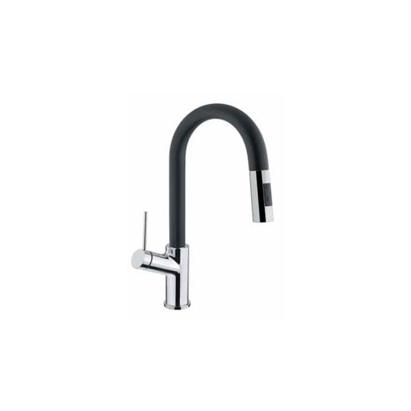 Expanda Torneira de cozinha modelo Viva D30 do tipo monocomando, chuveiro extraível e design italiano em aço inoxidável, acabamento cromado brilho e preto.