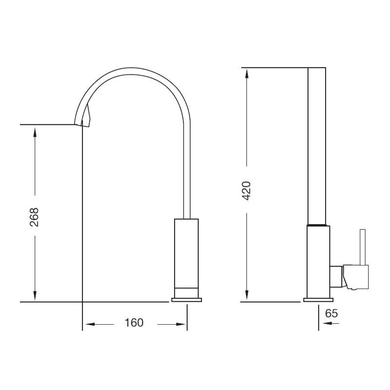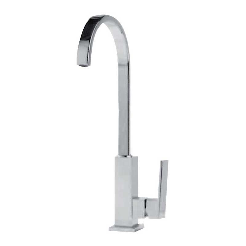 Torneira monocomando modelo Maia de 42 cm de altura e acabamento cromado para pia de cozinha. Cartucho cerâmico de 25 mm Instalação vertical sobre a borda.