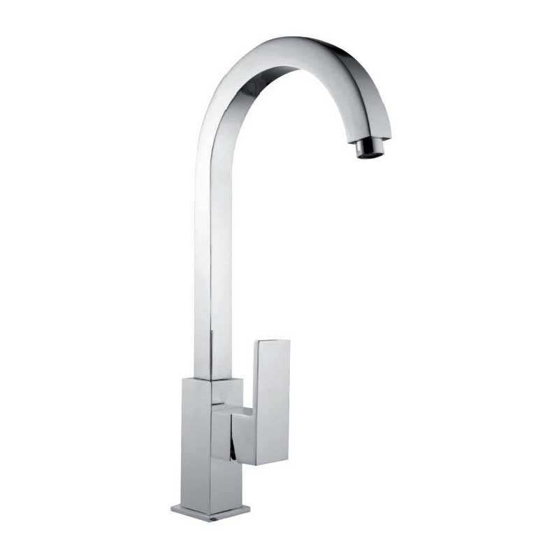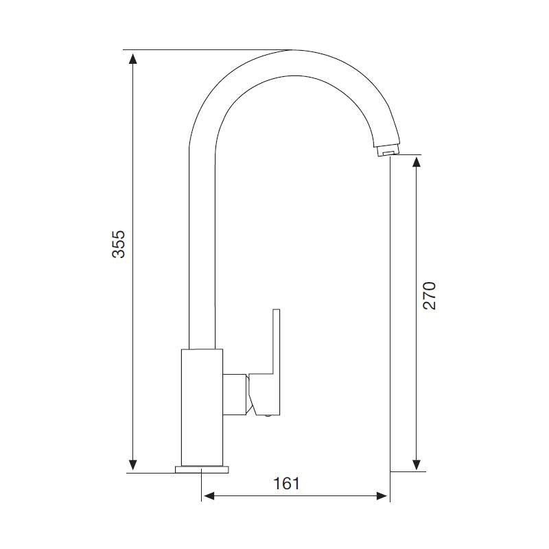 Torneira monocomando modelo Mar de 35,5 cm de altura e acabamento cromado para pia de cozinha. Cartucho cerâmico de 25 mm Instalação vertical sobre a borda.