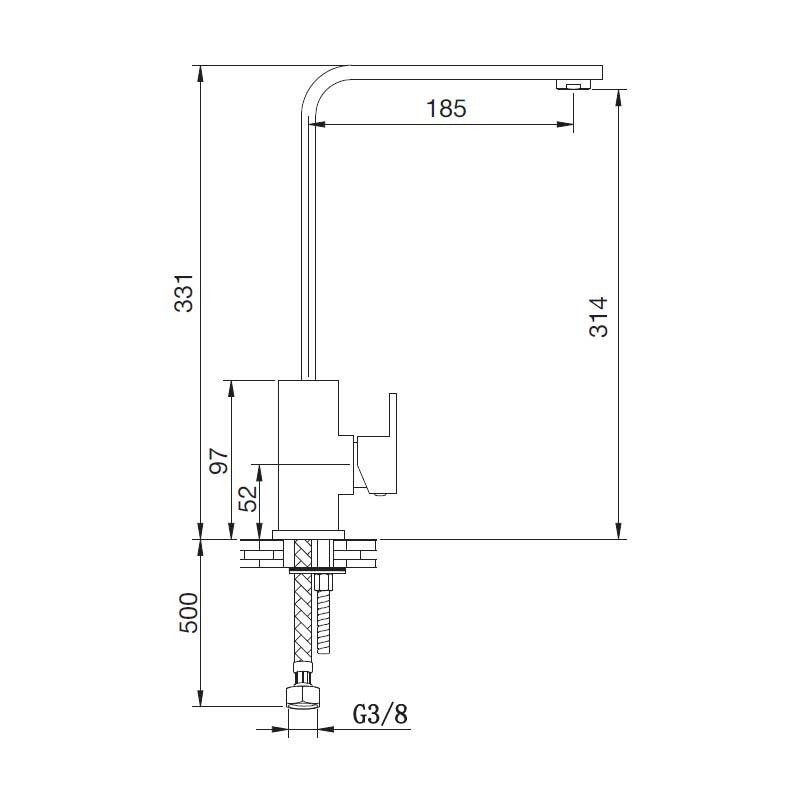 Torneira monocomando modelo Lua de 33,1 cm de altura e acabamento cromado para pia de cozinha. Cartucho cerâmico de 35 mm Instalação vertical sobre a borda.
