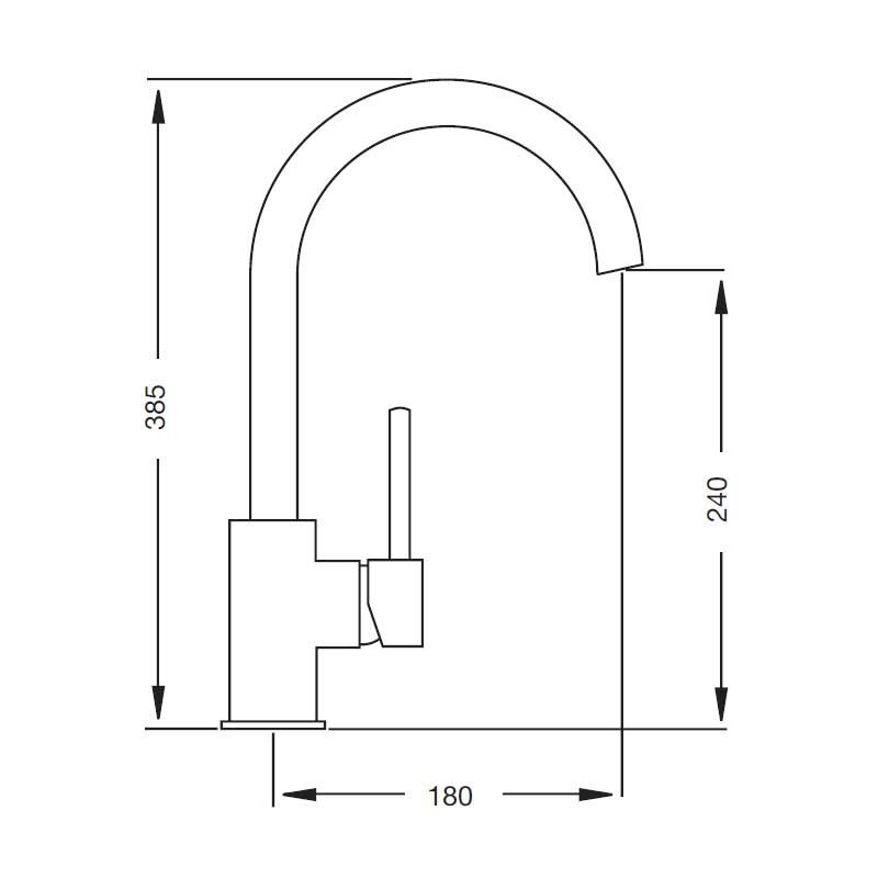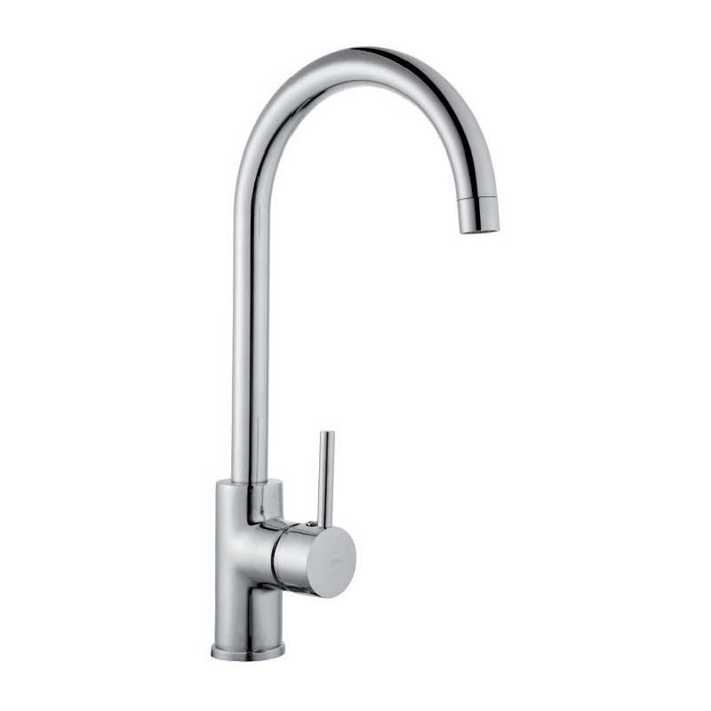 Torneira monocomando de bico curvo modelo-Íris de 38,5 cm de altura e acabamento cromado para pia de cozinha. Cartucho cerâmico de 35 mm Instalação vertical sobre a borda.