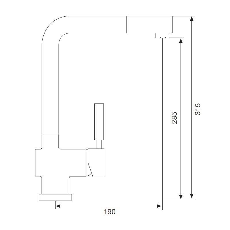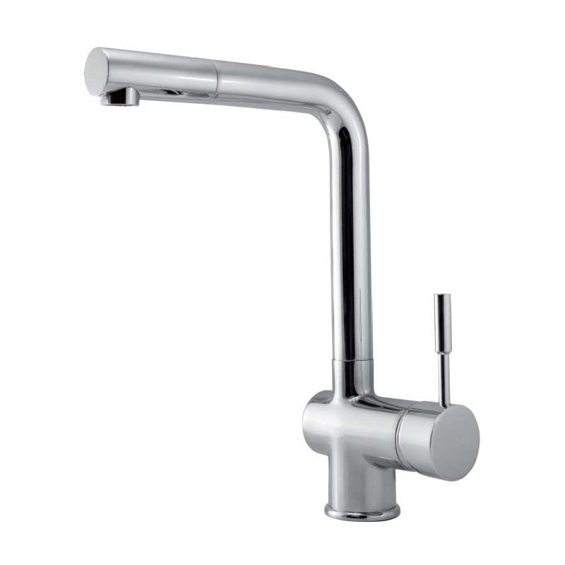 Torneira monocomando modelo-Íris de 31,5 cm de altura e acabamento cromado para pia de cozinha. Cartucho cerâmico de 40 mm Instalação vertical sobre a borda.