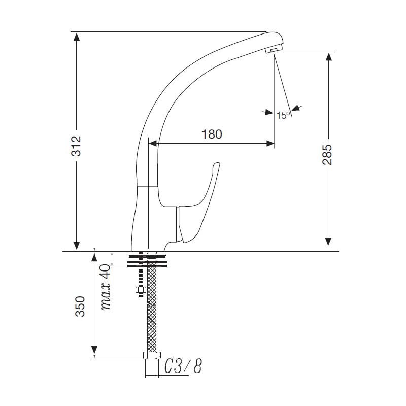 Torneira monocomando, de bica modelo elevado Padrão de 31,2 cm de altura e acabamento cromado para pia de cozinha. Cartucho cerâmico de 40 mm Instalação vertical sobre a borda.