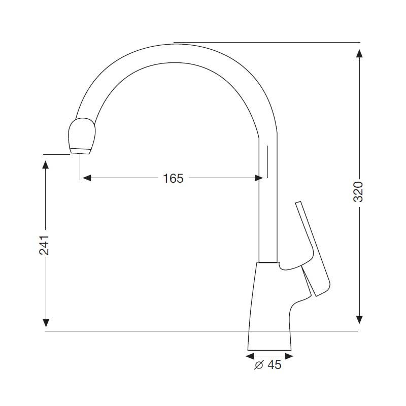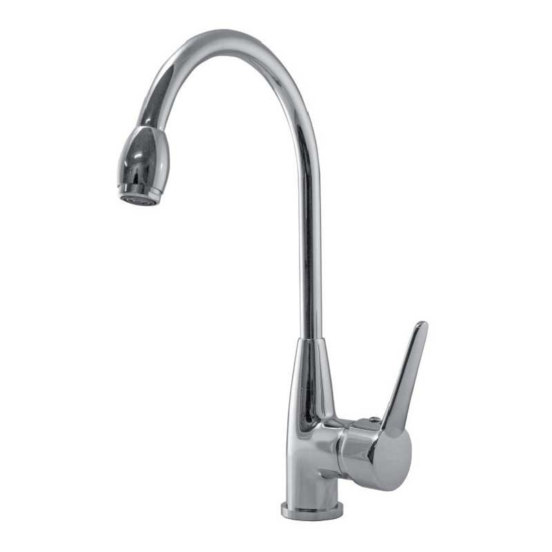 Torneira monocomando modelo Fedora 32 cm de altura e acabamento cromado para pia de cozinha. Cartucho cerâmico de 35 mm Instalação vertical sobre a borda.