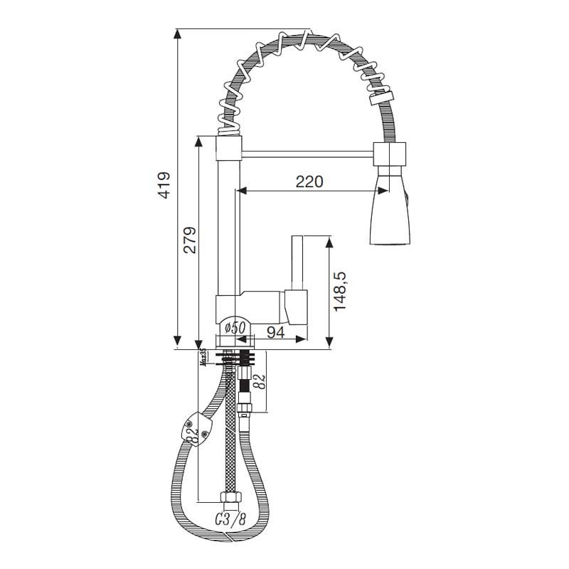 Chuveiro torneira com chuveiro e torneira com cais modelo Industrial de 41,9 cm de altura e acabamento cromado para pia de cozinha. Cartucho cerâmico de 35 mm Instalação vertical sobre a borda.