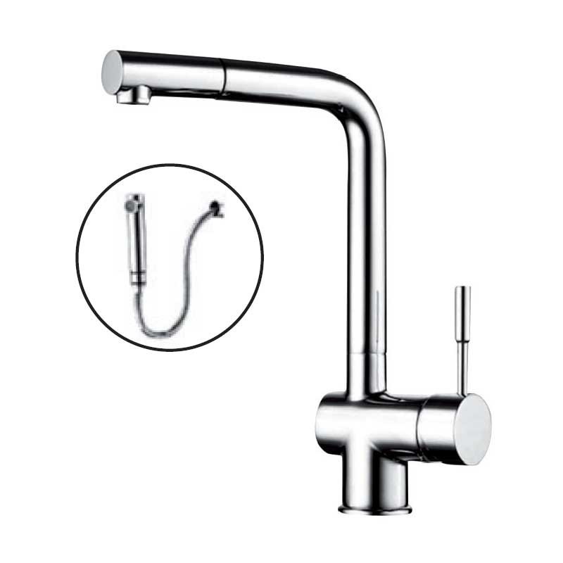 Chuveiro torneira com chuveiro extraível modelo-Íris de 31,5 cm de altura e acabamento cromado para pia de cozinha. Cartucho cerâmico de 40 mm Instalação vertical sobre a borda.