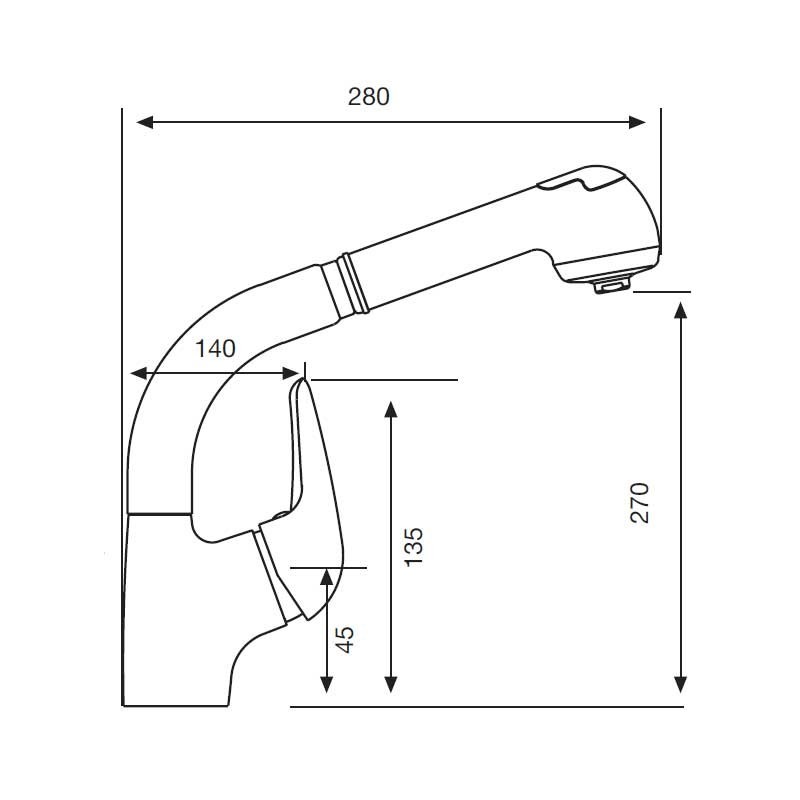 Torneira monocomando, de bica alta com chuveiro extraível modelo Padrão acabamento cromado para pia de cozinha. Cartucho cerâmico de 40 mm Instalação vertical sobre a borda.