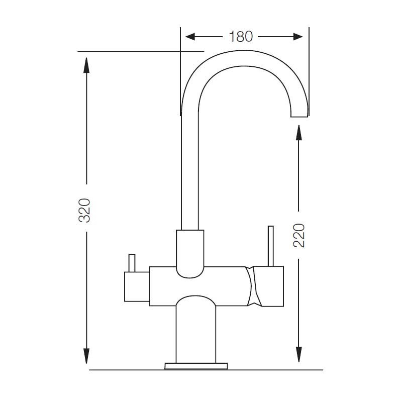 Torneira de dupla função com 3 vias (2 para rede de água e 1 para água de osmose) modelo Circular de 32 cm de altura e acabamento cromado para pia de cozinha. Cartucho cerâmico de 35 mm de entrega fixa para a água convencional e montagem cerâmica para água osmotizada.