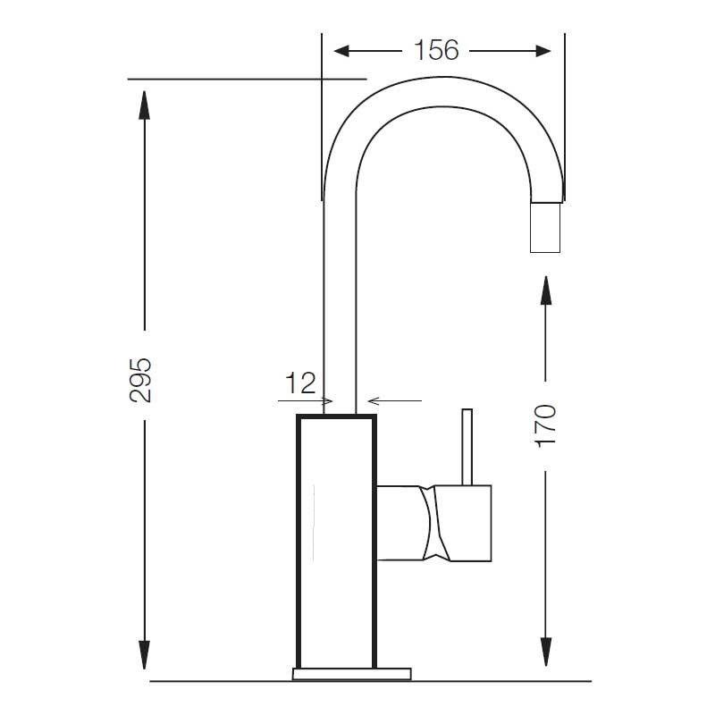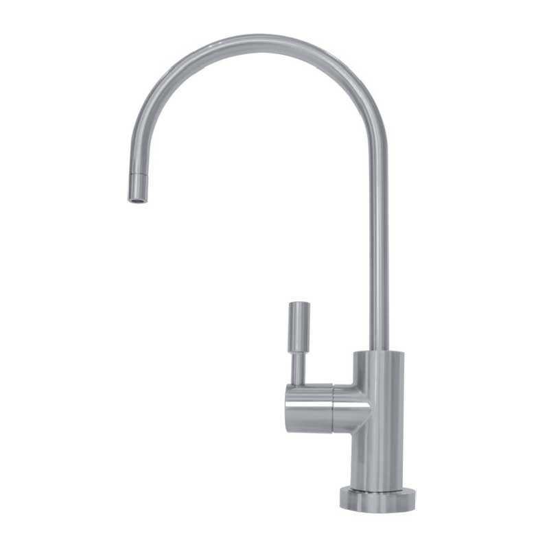 Torneira misturadora de água de osmose com 1 saída, com suporte cerâmico de 5 mm de diâmetro e tubo de 29,5 cm de altura, com acabamento cromado. Instalação vertical sobre a borda.